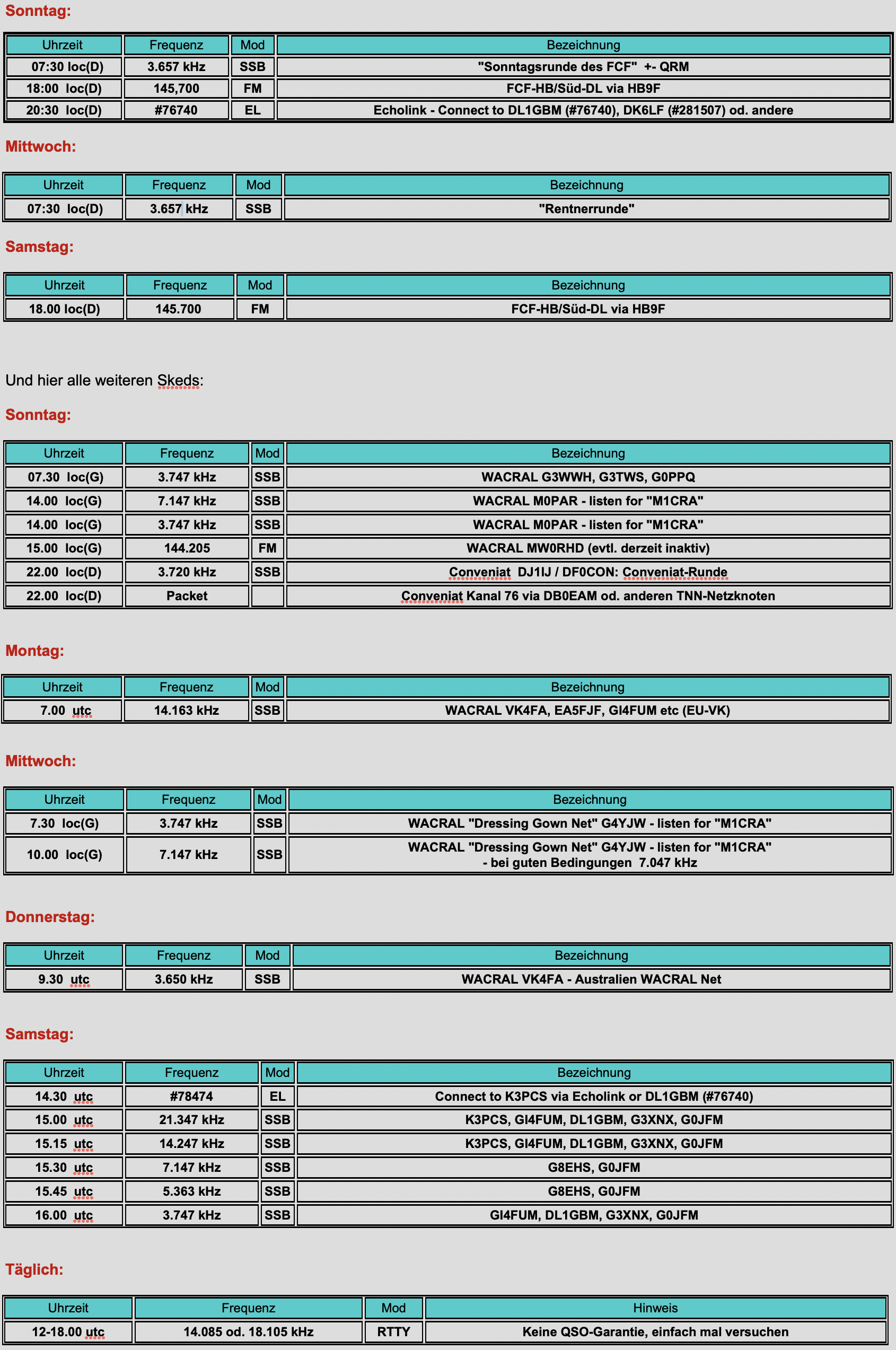 Hier sind unsere FCF-Skeds - aktuell ab 18.01.2026: | |